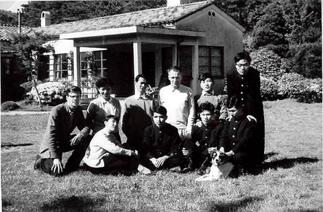 Met Nico van Zelm, Yoshikosan , Tatebe en blinde studenten op het gazon