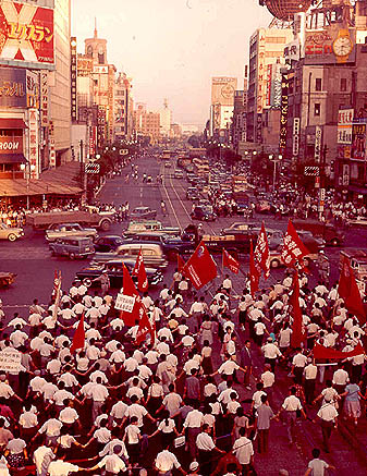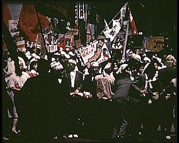 IJsbrand heeft ook al veel van de politieke strubbelingen in Tokyo verfilmd: de massale demonstraties tegen voortzetting van het Japans-Amerikaanse vredesverdrag, protestbijeenkomsten in studenten café's, de uitputtende strijd van studenten om toegelaten te worden op een universiteit, Japanners die hun avonden in z.g. pachinko parlours doorbrengen achter pinball machines, etc.. Hij maakt ook met zijn nieuwe draagbare bandrecorder opnames van alle geluiden, als ook protestliederen.