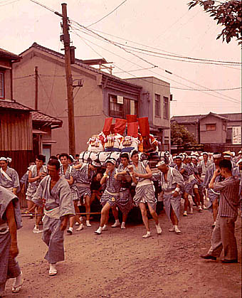 Hij bezoekt het Tenjin matsuri van de Temmangu Shinto tempel in Osaka. Rijk versierde boten varen statig met in kleurrijke kleding uitgedoste passagiers op en neer langs de Dojima rivier. Ook gaat hij opnieuw naar het Kenka matsuri vechtfestival van Himeji van de Matsubara Hachiman tempel, om dat nu professioneel te verfilmen. Een dubbele attractie zijn de leuke slechts met een lendendoek beklede jongens die het tabernakel rondtorsen. Deze opnames belanden in zijn Zen film, die later vaak door Contemporary Films in London verhuurd zal worden aan Engelse universiteiten.