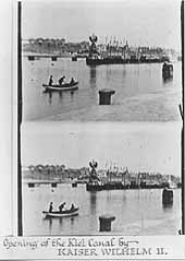 Early in 1895 he made a contract with the international chocolate manufacturer Ludwig Stollwerck of Cologne, who exploited Edison's Kinetoscopes in Germany and other countries for which he needed a regular supply of film subjects. In June 1895, Stollwerck invited Birt Acres to film the opening of the Kiel Canal in Germany. Acres made trips to Hamburg, Kiel and Berlin where he filmed the opening ceremony, which was performed by the Kaiser; a review of the troops; later on a visit to Berlin, a charge of German Lancers and finally, the Kaiser leading a procession through the streets of Berlin.