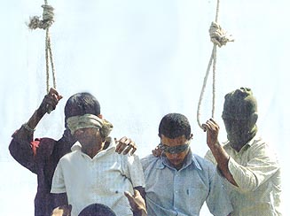 Hanging of two homosexuals aged 16 and 18 in Iran. Yet nowadays the Muslim Hanabalites teach that severe punishment is warranted for homosexual acts. Al-Fatiha estimates that 4,000 homosexuals have been executed in Iran since their revolution in 1979.